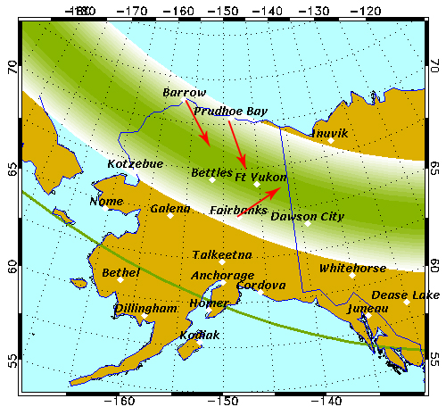 以Fairbanks為例,大部分的狀況都是往東北方看的。