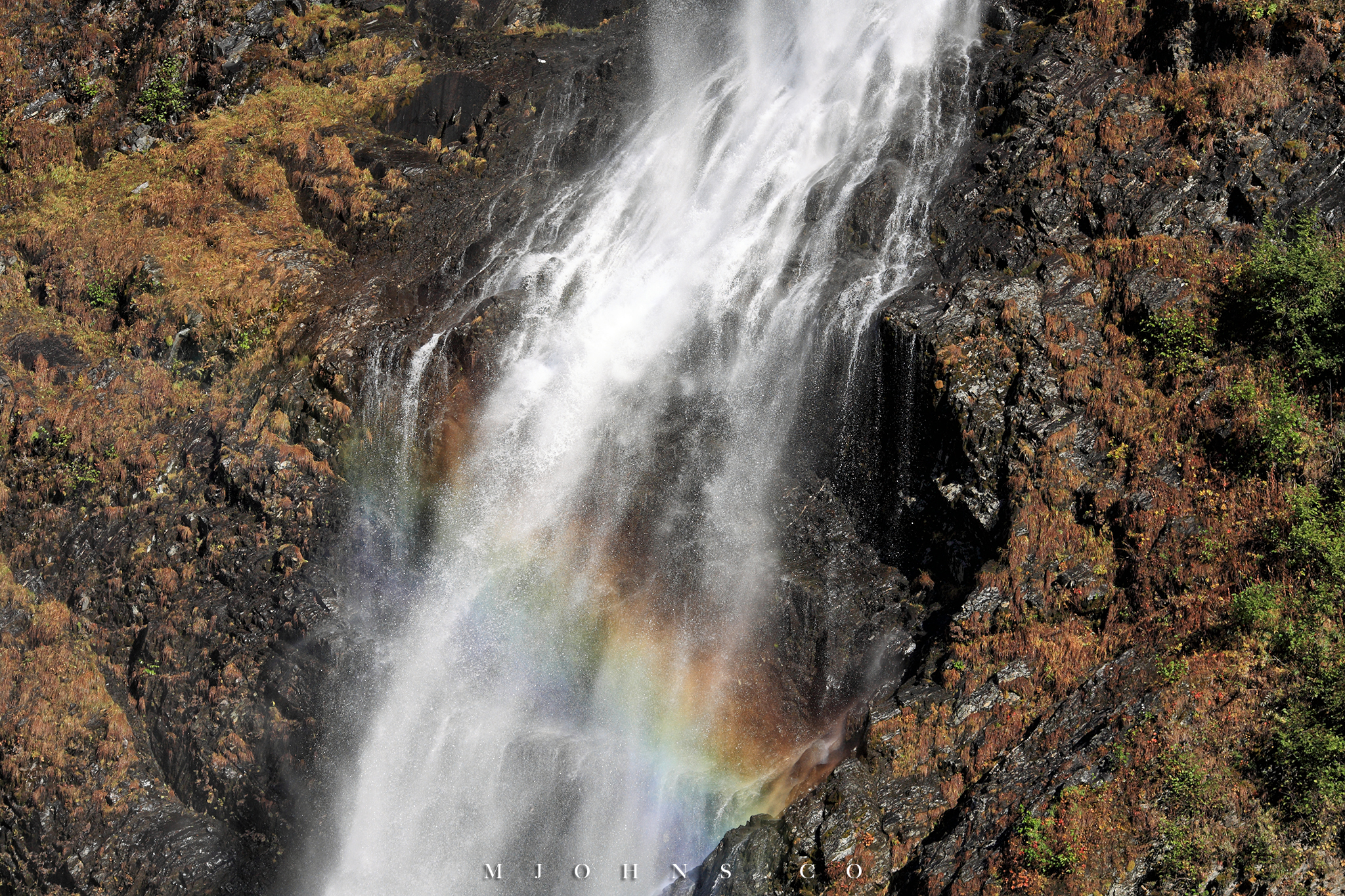 ▲到達Bridal Vail Falls,蒸騰的水氣與陽光輝映出彩虹。