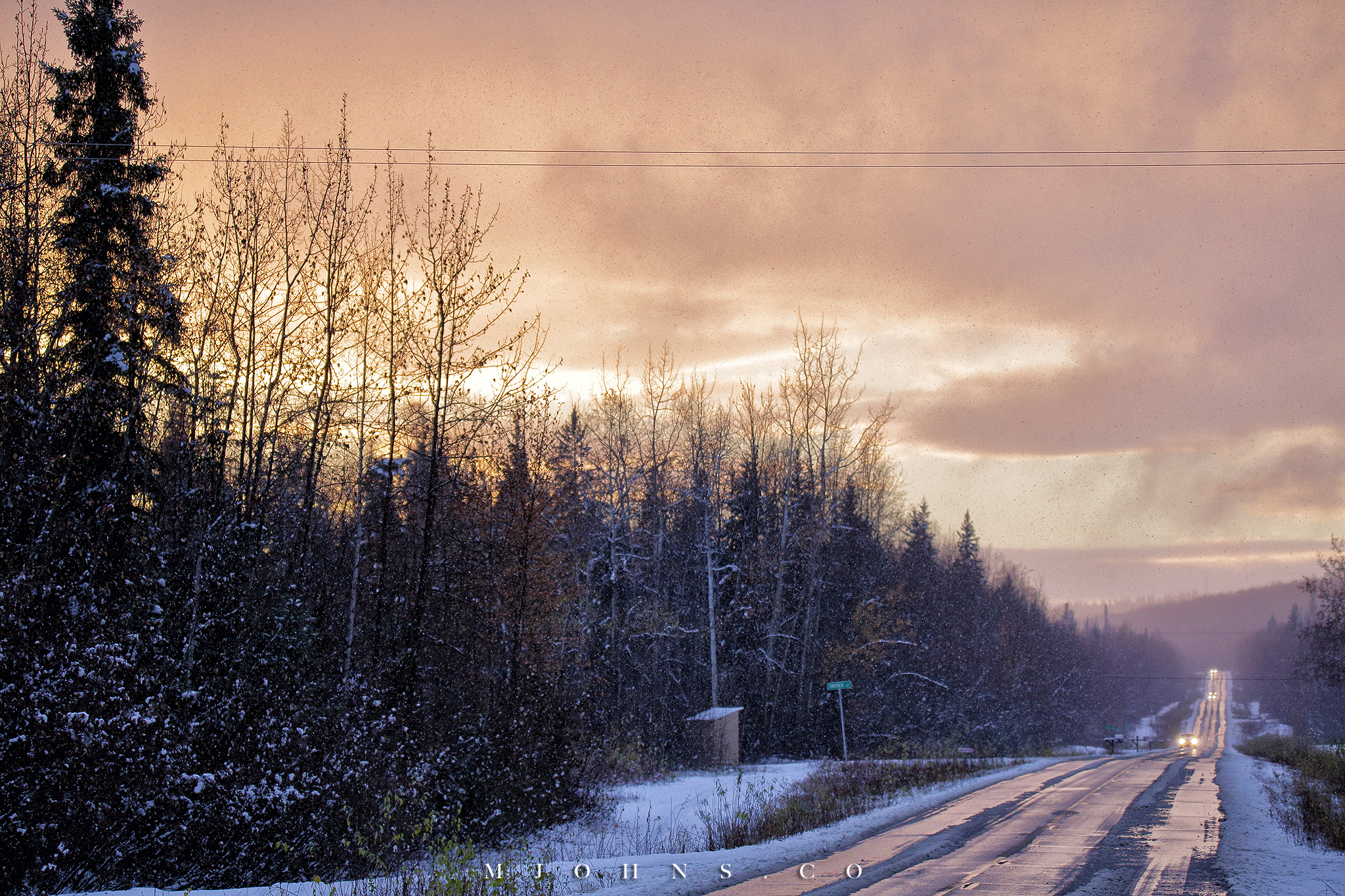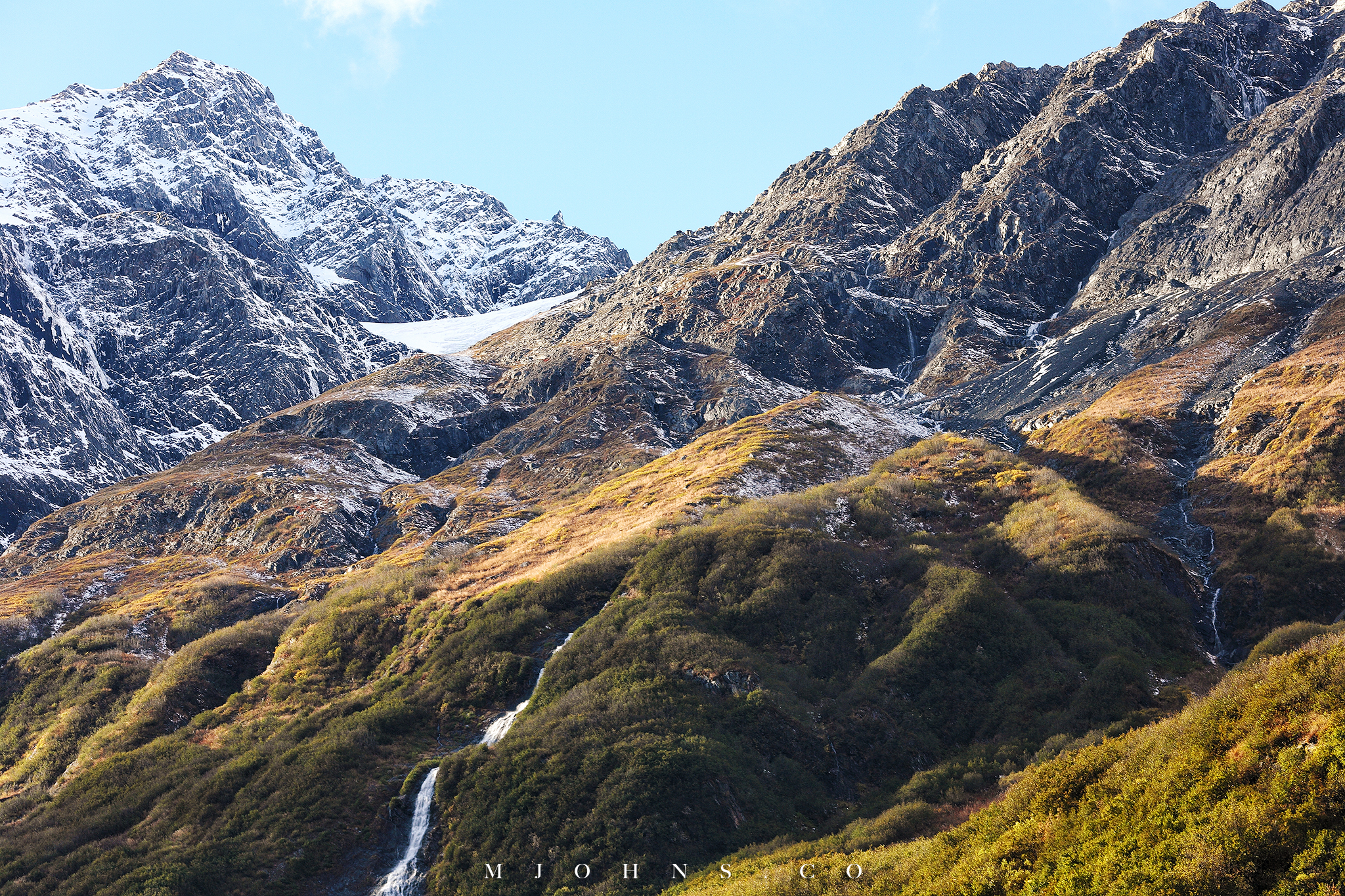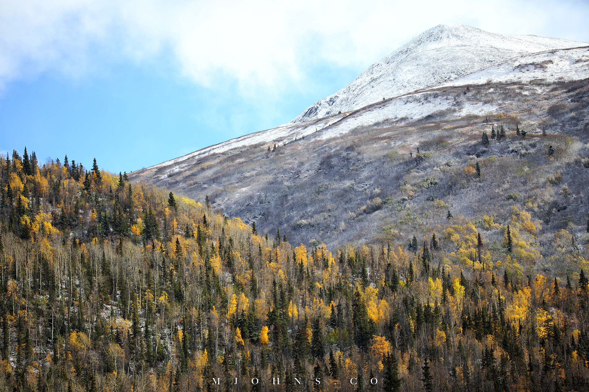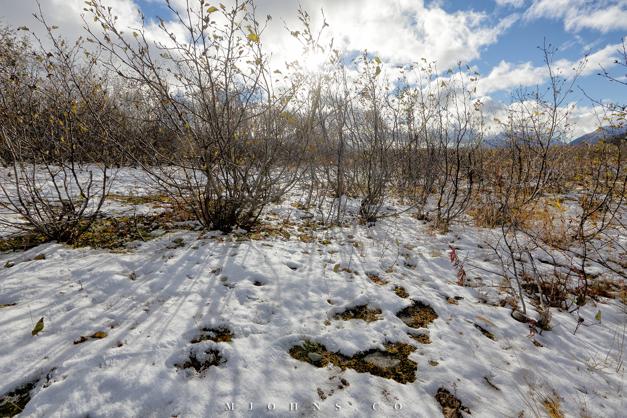 夜晚風塵僕僕來到Copper center,住在一間不錯的B&B,以這裡為基地隔天繼續南下。所幸這一帶風雪漸停,天亮再次出發時更是多雲到晴的天氣,路上也沒有積雪,才讓第二段車程順利了不少。雖然沒有像Christopher一樣走進荒野的霸氣,我們能用自駕的方式快速的走過這片無垠大地,路途中每一段路都有讓人想駐足許久的地方,每過一個彎道看見不同的景色都讓人驚喜連連。