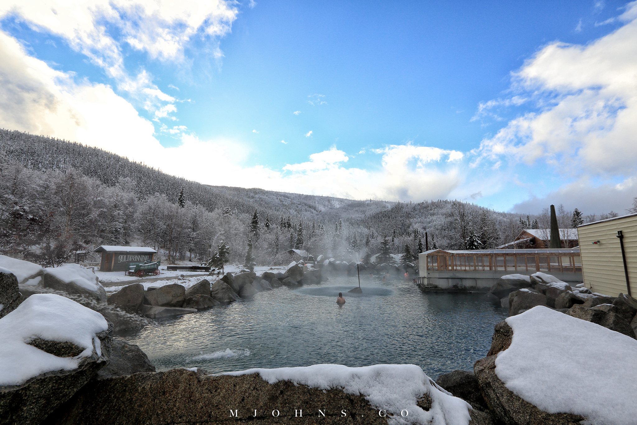 ▲下雪就是要泡溫泉啊,不然要幹麻?從市區開約一個半小時來享受Chena hot spring,現在每人$15,毛巾$5,建議自備大毛巾現省五元。一邊飄著雪一邊泡溫泉,人生一大樂事!