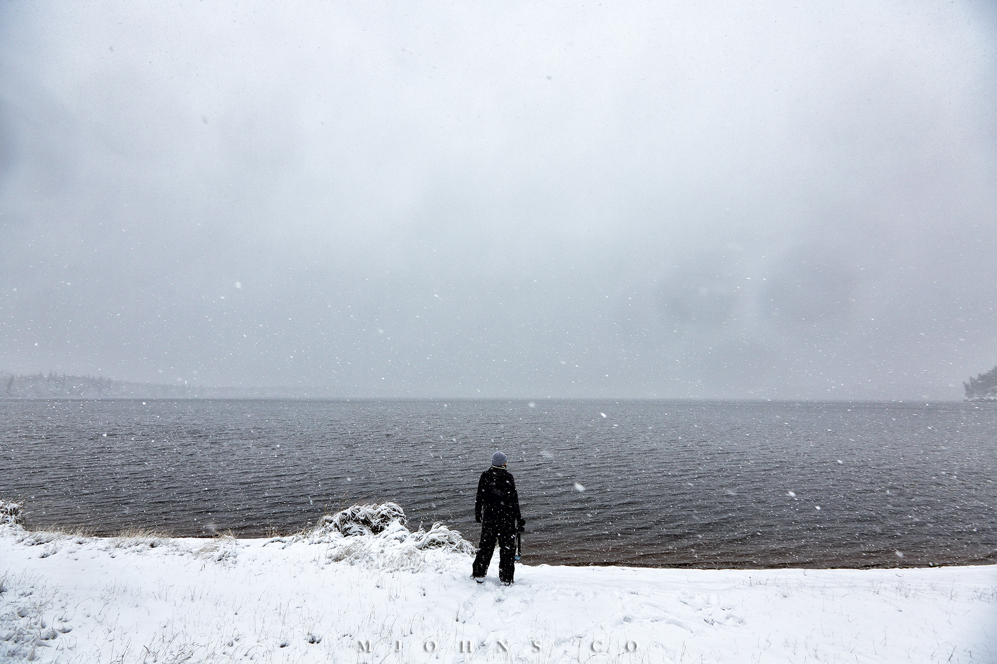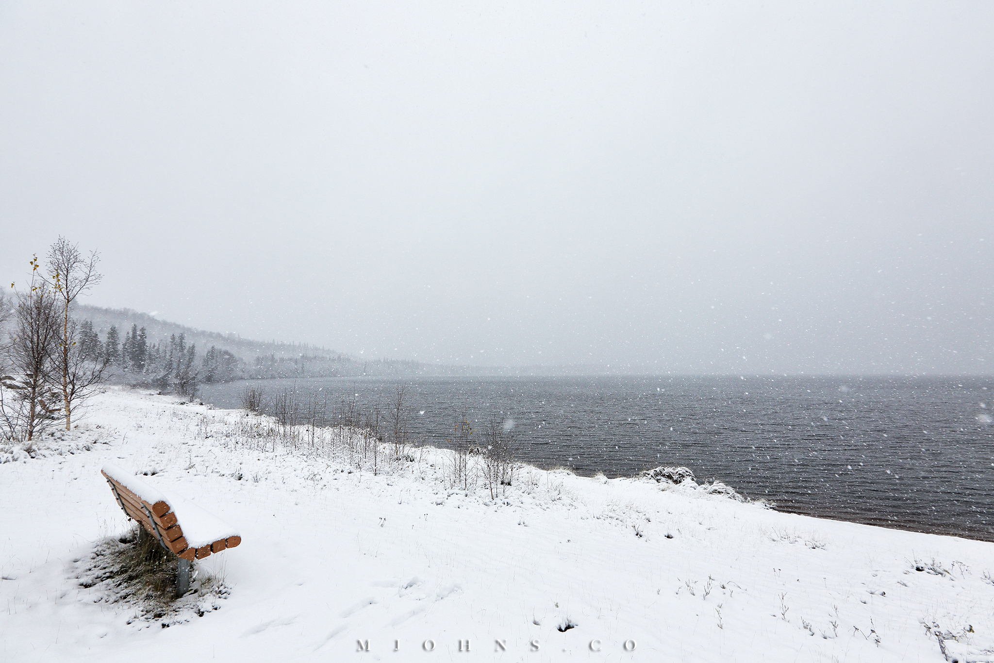 ▲大雪中的Birch Lake,靜中有動,卻仍有無盡的寂靜之感。