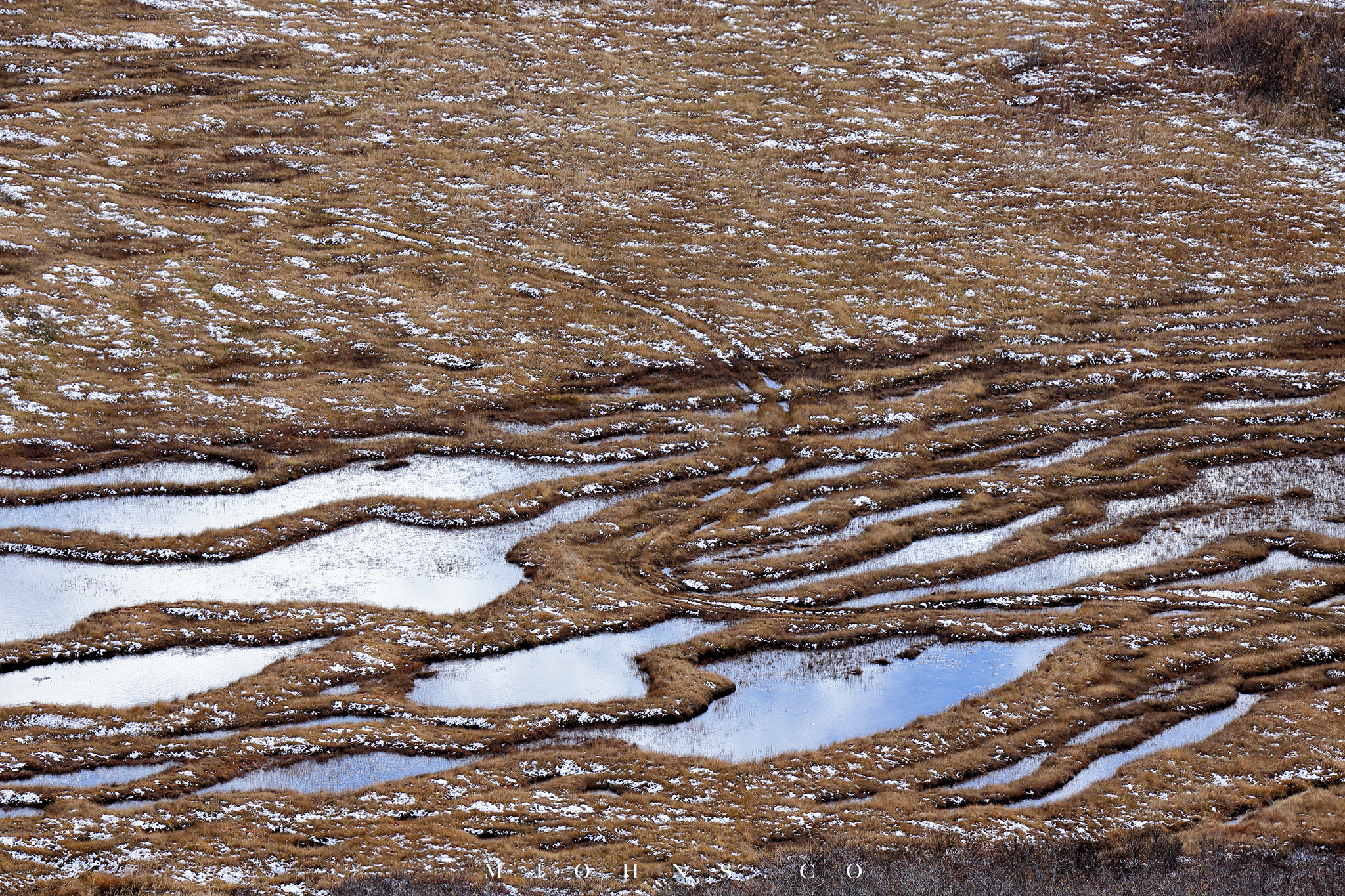 ▲途中經過這片大草原,整片植物上的融雪成了小水珠,在太陽的照映下閃著泡泡般奇異的光彩,非常特別。可惜相機拍不下如此夢幻的場景,只能永存心中了。