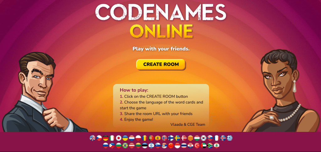 經典桌遊的線上版,將所有人分為兩組,各有一個隊長,雙方的隊長要用一個字跟一個數字提示隊員猜到自己顏色(紅色或藍色)的內容,如果答對可以選擇要不要再猜,然後要避免猜到黑色,如果隊員講到黑色就直接輸,最後看哪一隊先把自己顏色的內容猜完即獲勝。這個遊戲無論是現場或者線上互動性都還不錯,但很看隊長跟隊員的默契,如果沒默契玩起來就很沒勁。