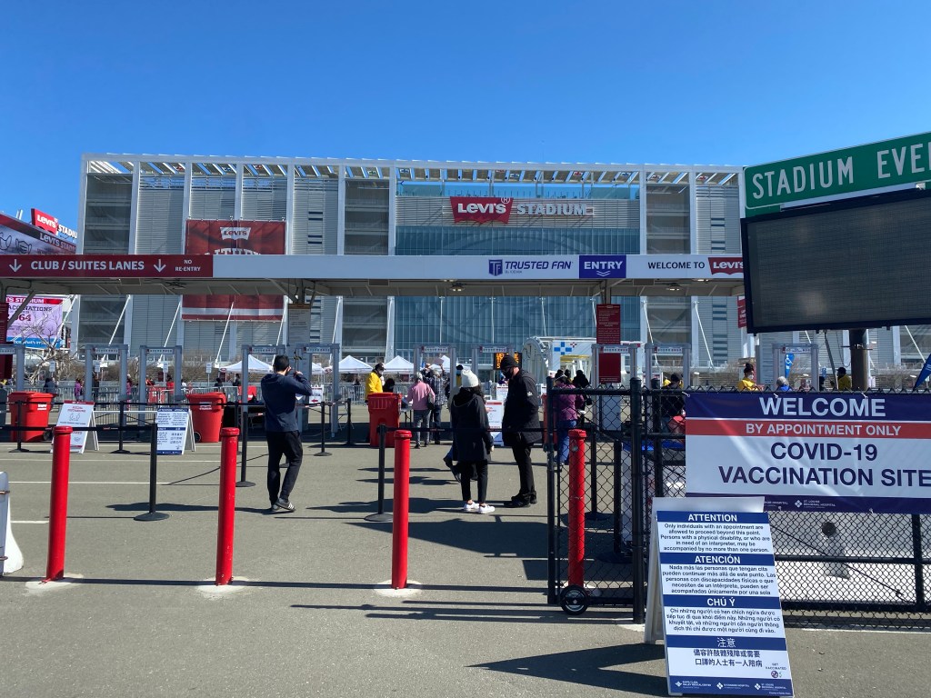 這次疫苗的施打地點在Levi’s stadium,網路預約之後會請你大約十五分鐘前抵達停車場。